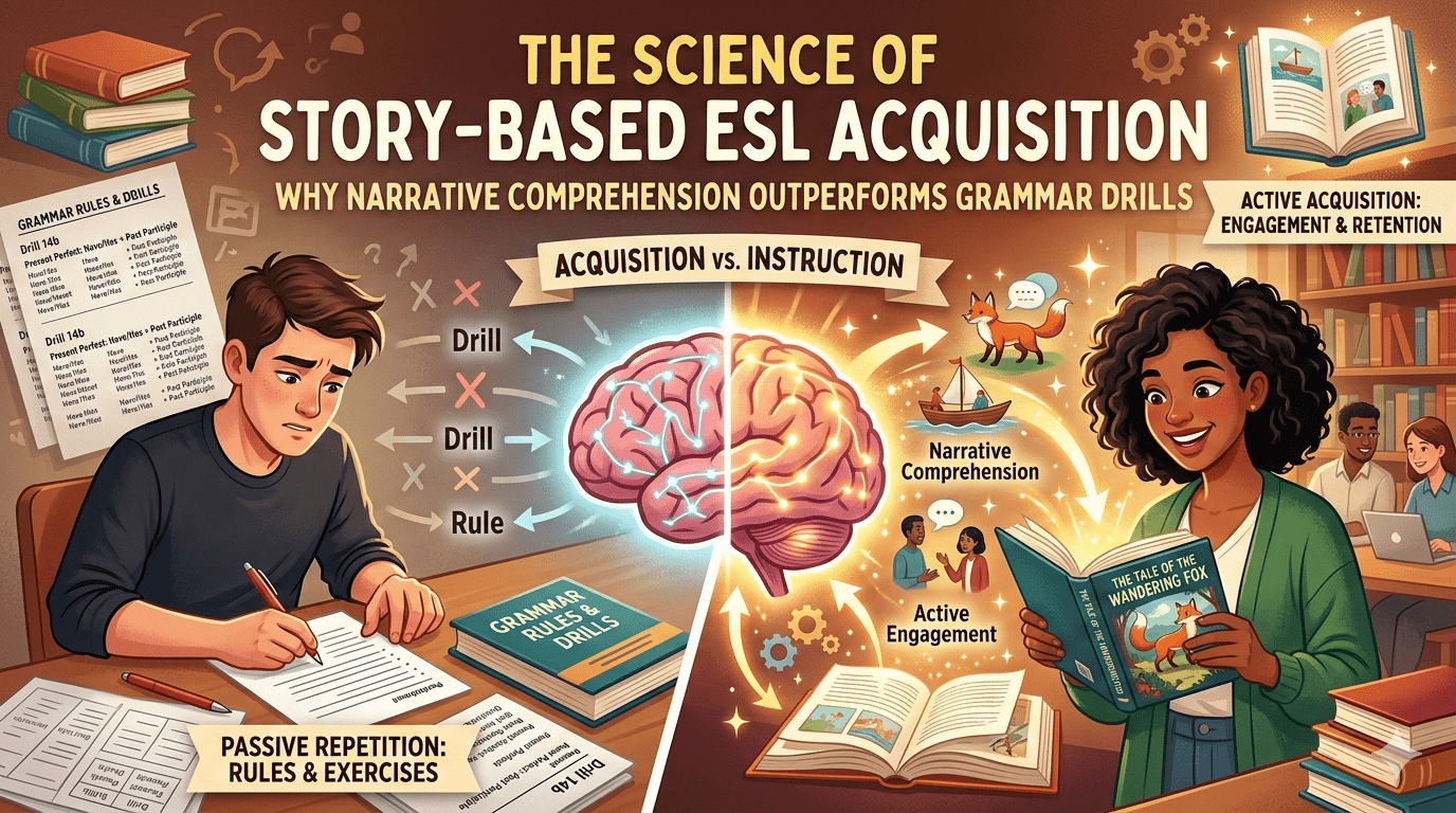 The Science of Story-Based ESL Acquisition: Why Narrative Comprehension Outperforms Grammar Drills